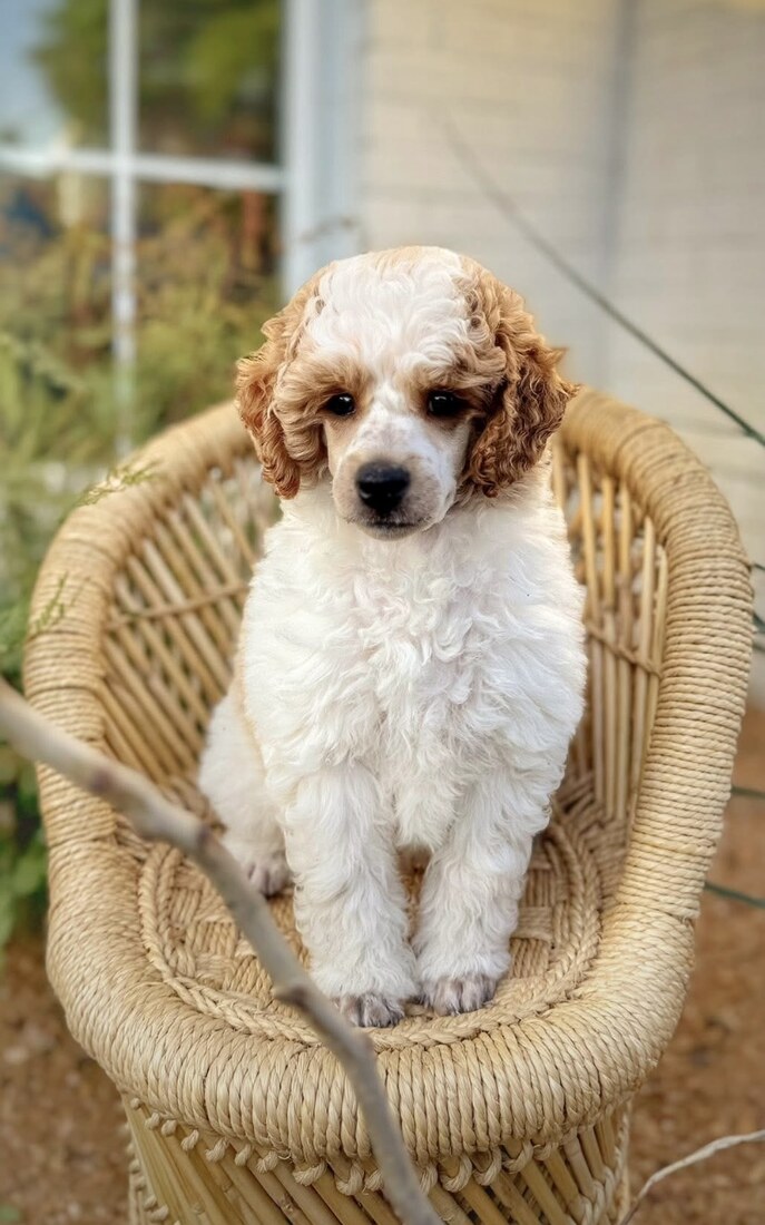 Michael is a beautiful miniature poodle with a sweet and affectionate temperament. Though still a puppy, he is expected to be paired with Gemma in early 2027 and has the potential to produce a wide variety of coat colors. Michael currently weighs 14 pounds and stands 14 inches tall."