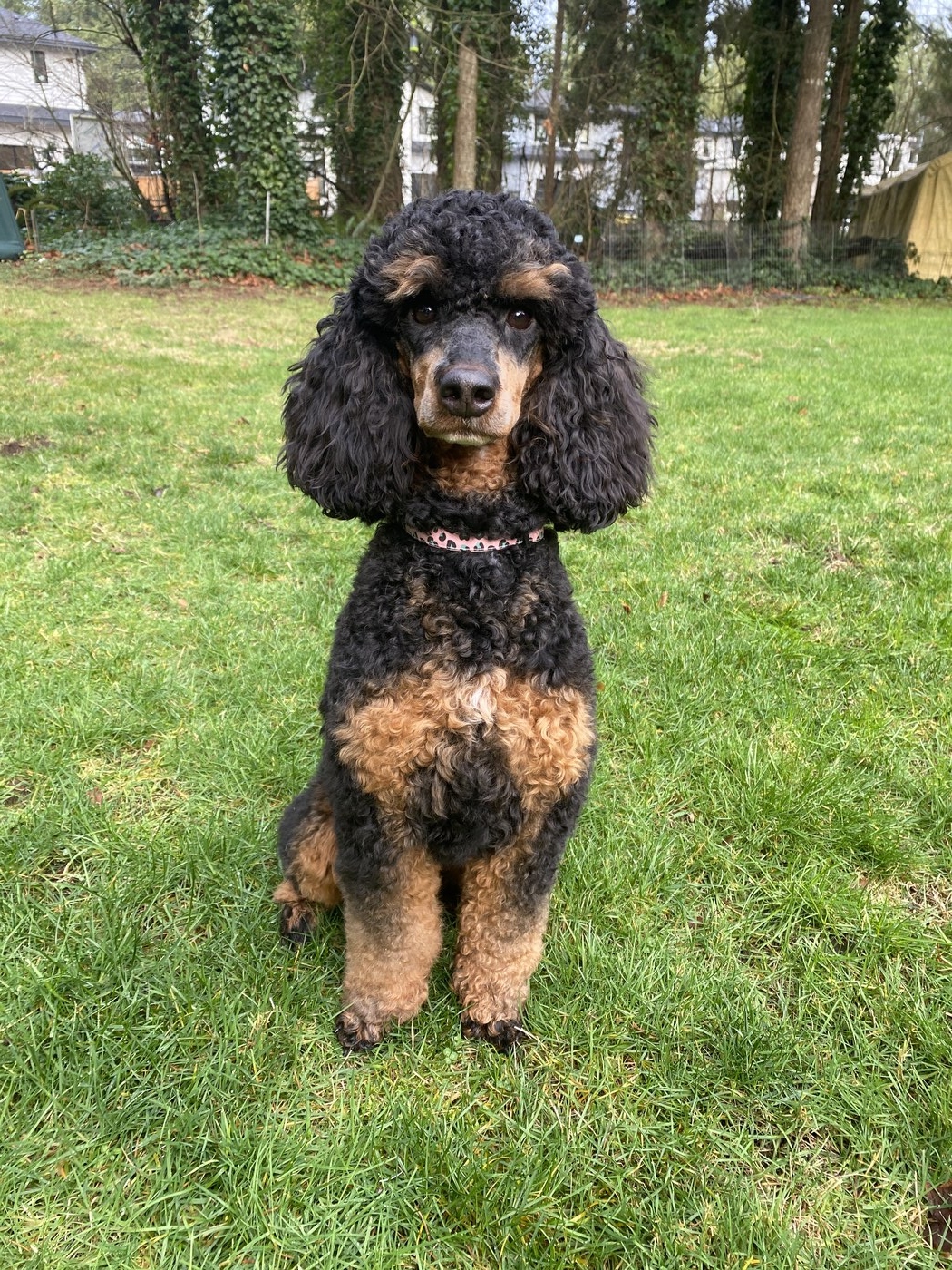 Gemma is still a puppy, but she's already showing what an exceptional dog she is. Playful and independent, she can entertain herself for hours, yet she’s also incredibly affectionate with a wonderful off-switch. She currently weighs 21 pounds and stands 17 inches tall. We anticipate her first litter to arrive summer of 2027.